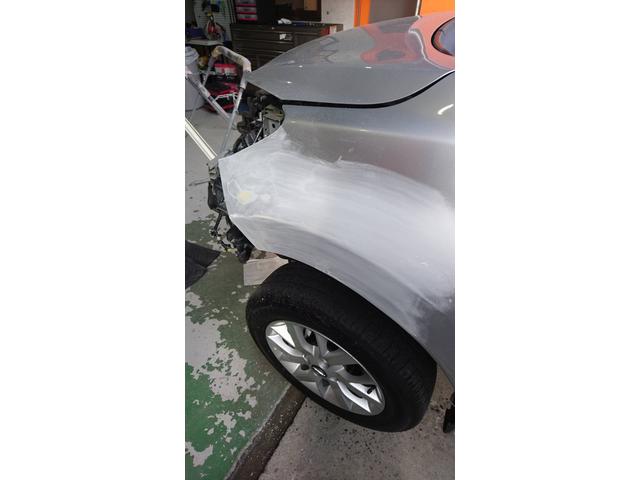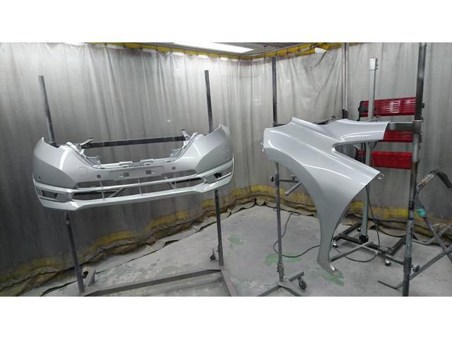 本日はノートのフロントバンパー フェンダーの塗装をしました。